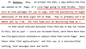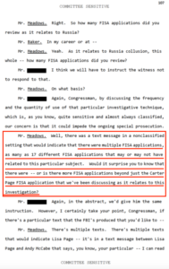 It looks as though there could be up to 17 FISA applications that were under consideration and Baker’s refusal to answer the question gives some credibility to Meadow’s assumption.