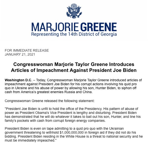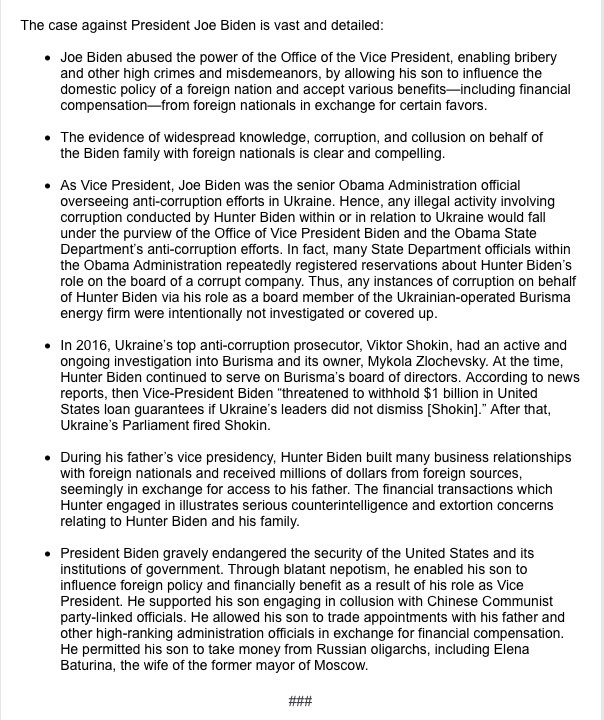 I just filed Articles of Impeachment on President @JoeBiden. pic.twitter.com/mcwEEkKiHL