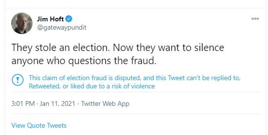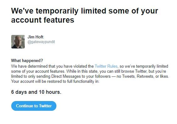 ‘Twitter handed The Gateway Pundit account a 12-hour suspension for questioning the stolen election.