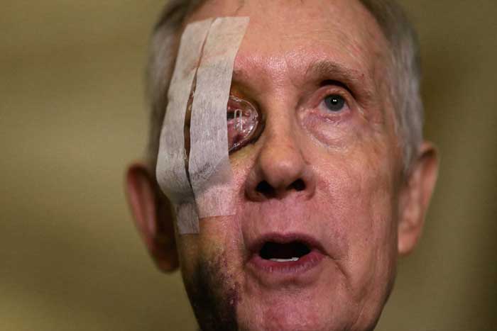 Harry Reid announced that he will not seek reelection. By the way, does anybody believe that Harry Reid really had an accident with his exercise machine? Does anybody really believe that’s why Harry Reid is still bruised and is still wearing dark glasses, what, months after this accident with his exercise machine?