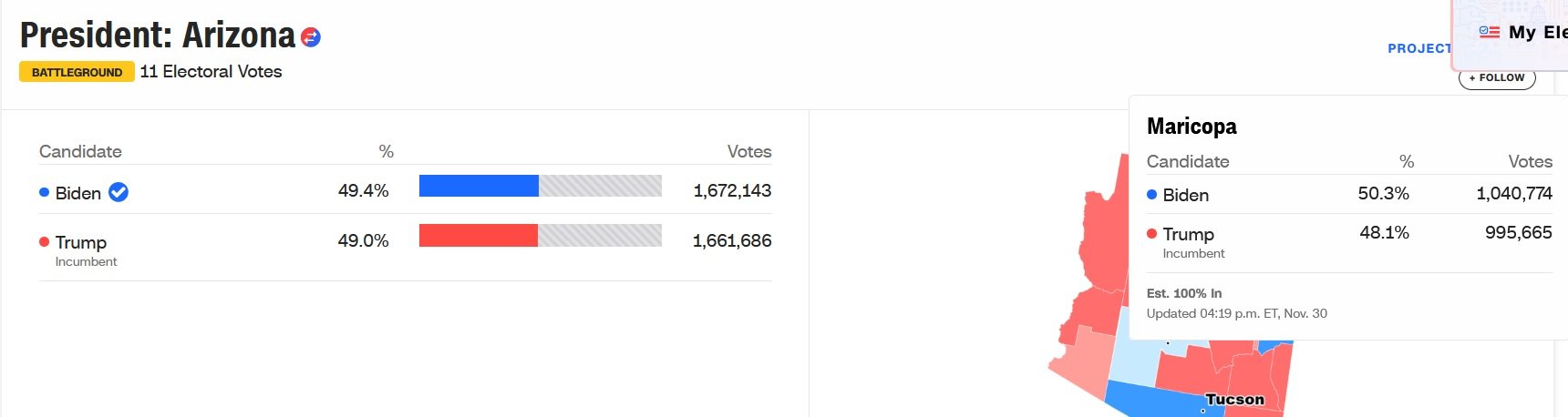 In regards to Arizona as a whole, Biden was the first Democrat Presidential candidate to win Arizona since Bill Clinton in 1996. Biden won the state according to CNN by a mere 10,457 votes.