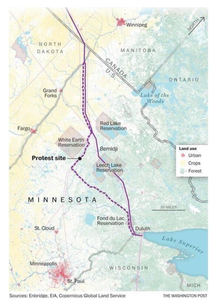 The Washington Post reported that hundreds of protesters, including Jane Fonda and Native American women marched onto the Enbridge construction site and strapped themselves to heavy machinery.’