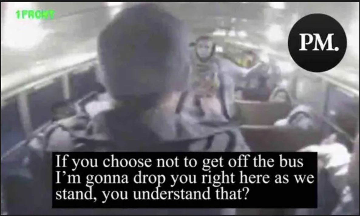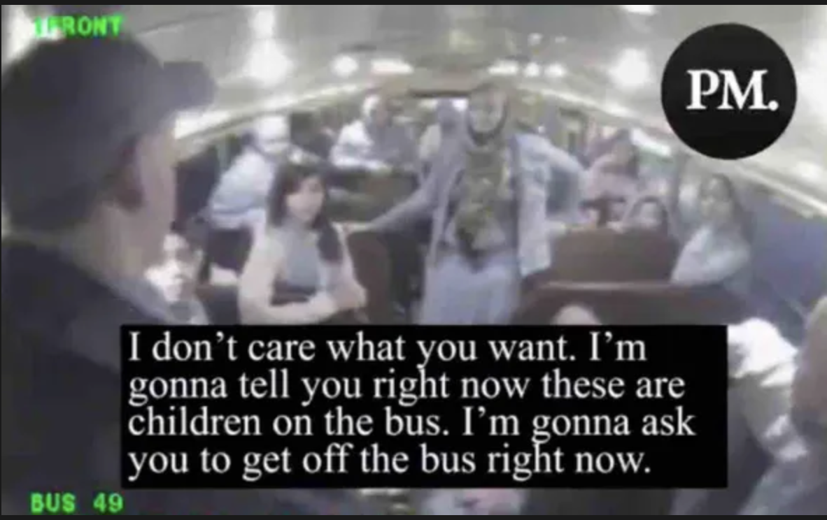 “I don’t care what you want. I’m gonna tell you right now these are children on the bus, and I’m gonna ask you to get off the bus right now.”
