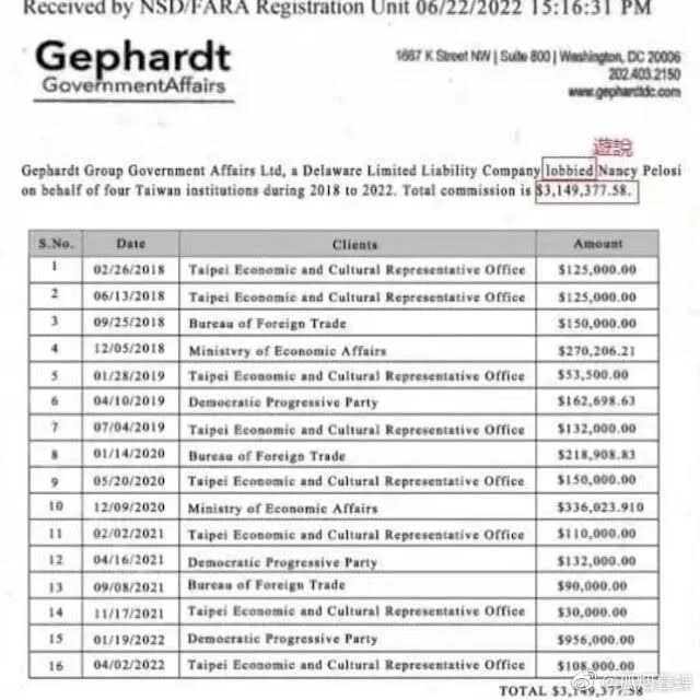 In addition, an enormous amount of money has flowed from Taiwanese government agencies to Democrat Dick Gephardt’s lobbying firm to specifically influence Nancy Pelosi.
